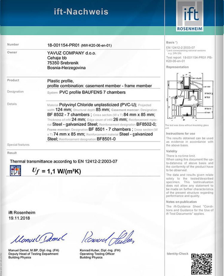 Tutto Baufen i prodotti sono certificati e i test hanno dimostrato l'elevata qualità di tutti i profili e degli infissi.